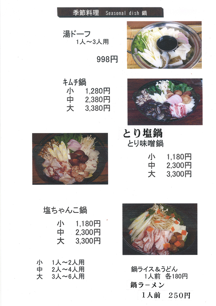 季節の料理 Seasonal dish 鍋(期間:11月〜2月)